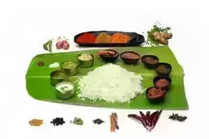 Steamed Rice+Sambar+Puli Kuzhambu or Vatha Kuzhambu+Rasam+Kootu+Poriyal+Buttermilk+Appalam